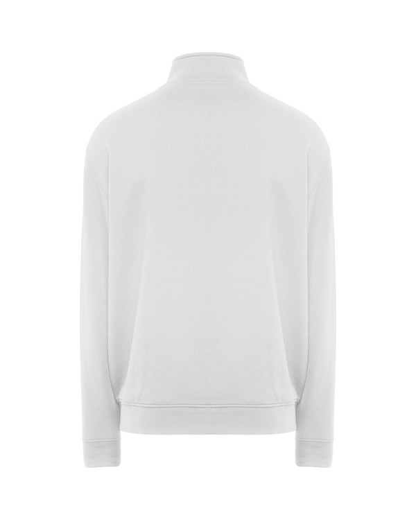 The Roly Ulan Sweatshirt is a unisex garment made of 50% cotton and 50% polyester with a weight of 280 g/m². Its modern design includes a high collar with a matching zipper, a matching inner collar, and 1x1 ribbed cuffs and waistband.