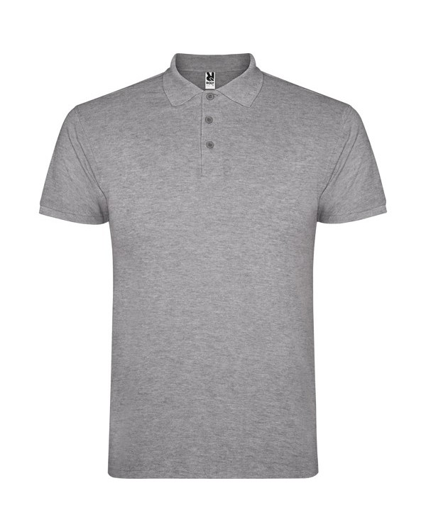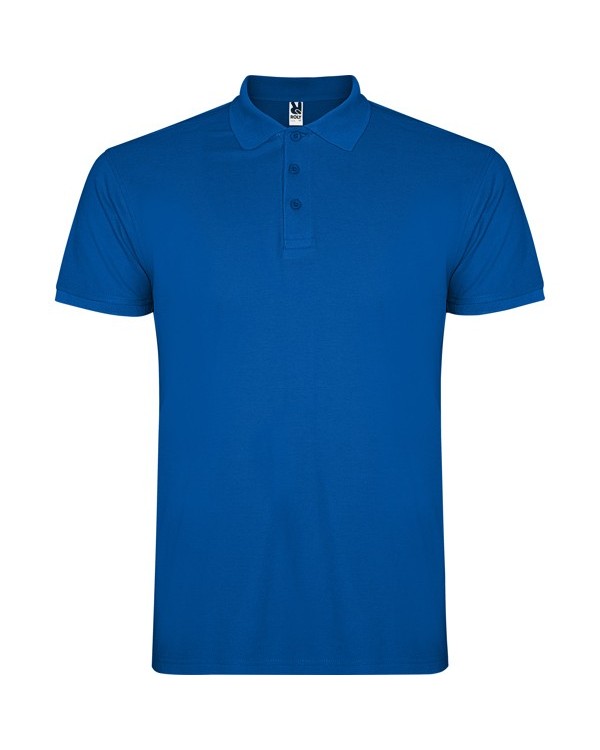 The Roly Star Polo is a classic short-sleeved garment made from 100% cotton piqué with a weight of 200 g/m². It features a three-button placket, a 1x1 ribbed collar and sleeve trim, and side vents at the hem. Customize it with your logo for work and corporate wear.