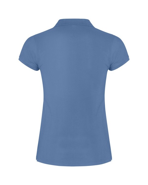 The Roly Star Woman Polo is a short-sleeved garment designed for women, made from 100% cotton piqué with a weight of 200 g/m². Its slim fit enhances the feminine figure and features a 1x1 ribbed collar and sleeve trim, a three-button placket, and side slits at the hem for added comfort.