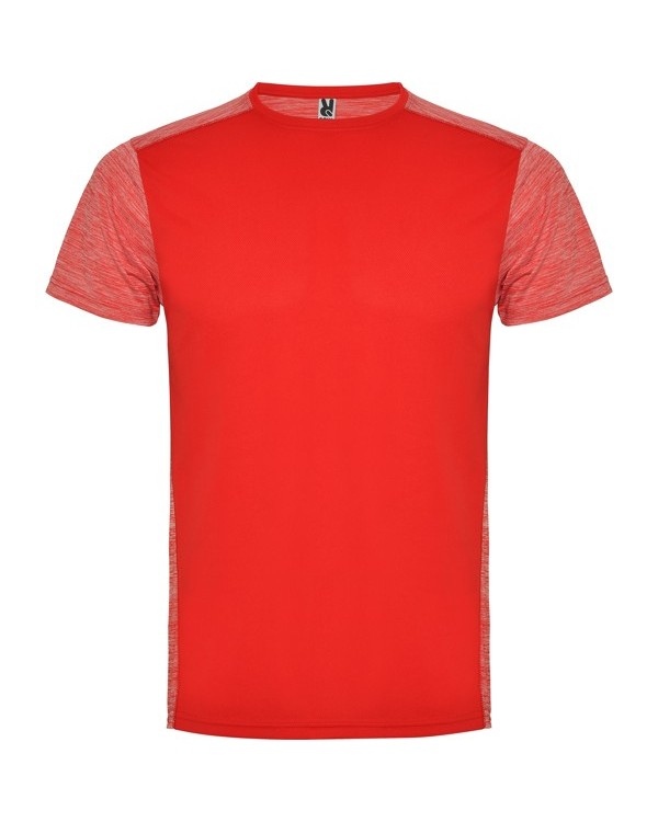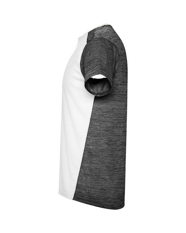 Roly's Zolder Technical T-Shirt is a versatile and functional garment, perfect for promotional activities, corporate gifts, or marketing campaigns. Designed with a sporty and modern style, this short-sleeved T-shirt stands out for its construction in two technical polyester fabrics: bird's eye on the front and space dye on the back, shoulders, and sleeves, giving it a dynamic and attractive look. Its design also includes a slightly longer back cut, ideal for a better fit during physical activity.