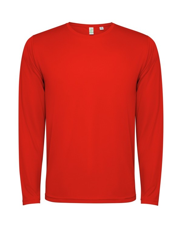 Roly's Estoril L/S technical T-shirt is made from 100% recycled polyester and is antibacterial, breathable, features ControlDry technology, and stretch fabric. Available in various sizes for adults and children, and in multiple colors to customize with your logo.