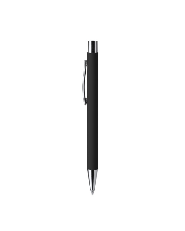 Soft touch metal pen with chrome details and blue ink. Customisable with laser marking or pad printing. Ideal for advertising and corporate gifts.
