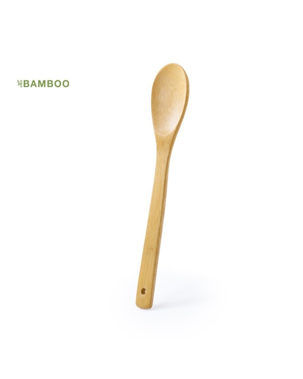 The Selma Spoon, made of bamboo wood, is a practical kitchen utensil that comes in an individual bag with die-cut cardboard reinforcement. It can be personalized with your logo, trademark or product, making it an excellent promotional gift to make your brand visible in every dish that is cooked.