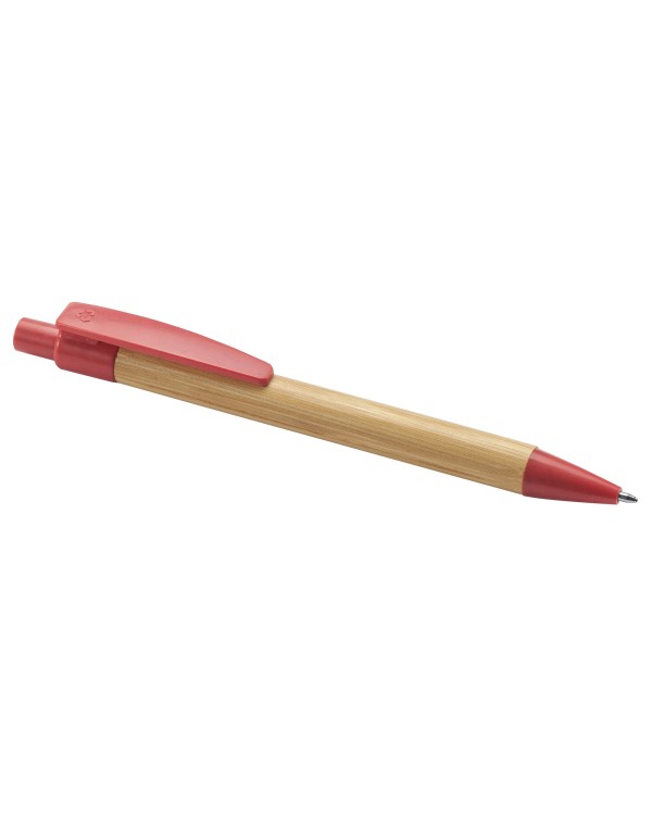 Customisable ballpoint pen with bamboo barrel and wheat fibre/ABS fittings. Push-button mechanism and blue ink. Ideal for advertising, corporate gifts and eco-friendly merchandising.