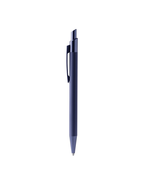 Recycled aluminium pen with a matte rubber finish, blue ink and laser or pad printing personalisation. Elegant and sustainable, ideal for advertising and corporate gifts.