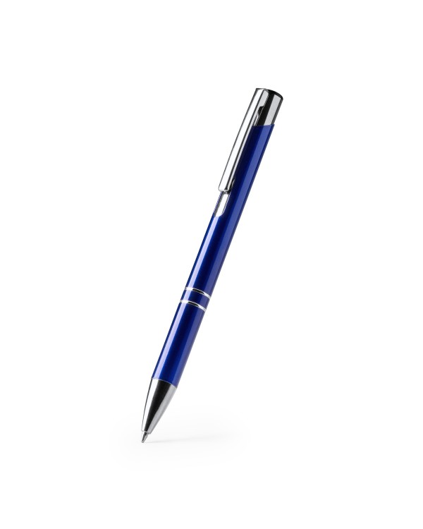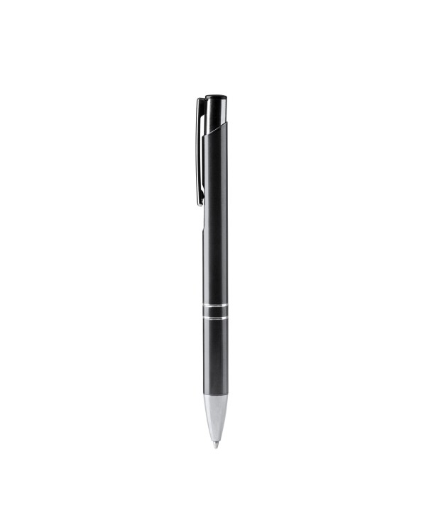 Recycled aluminium ballpoint pen with anodised finish, blue ink and push-button mechanism. Personalisable with laser or pad printing. Ideal for advertising and merchandising.