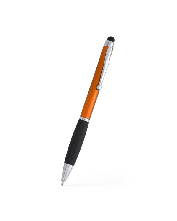 ABS twist pen with metallic finish and touch pointer. Customisable with pad printed logo. Ideal for promotional gifts and merchandising.