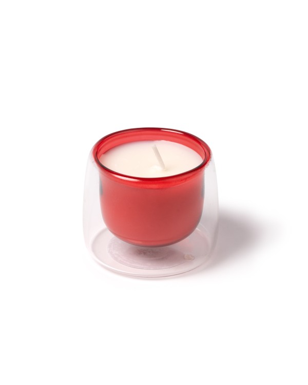 Vanilla-scented vegetable wax candle in a double-walled glass container. Customizable with your logo, ideal for advertising and personalized gifts.