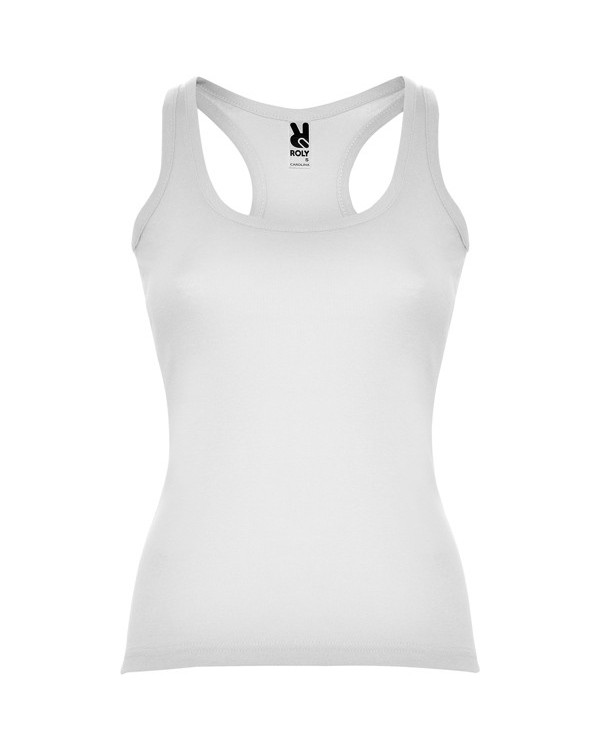 The Carolina T-shirt by Roly is a feminine tank top made from 100% cotton with a 220 g/m² weight. Featuring a fitted design, piped armholes and neckline, this T-shirt features a racerback and side seams for freedom of movement. Ideal for sports activities and everyday use, it is available in various colors and sizes (S-2XL).