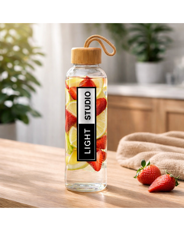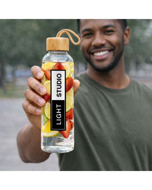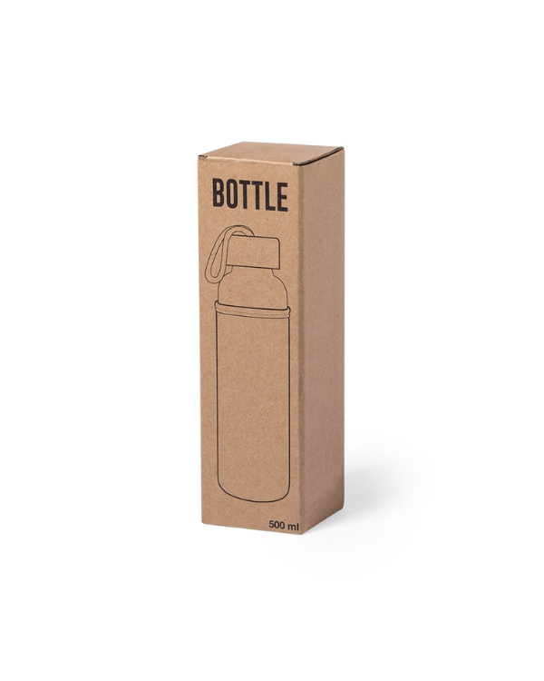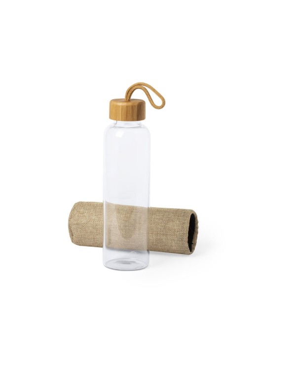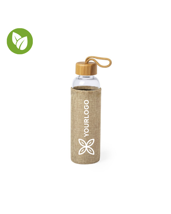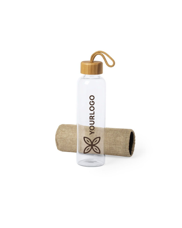 The Kasfol bottle is an elegant and eco-friendly option, ideal for corporate gifts and personalized merchandising . With a capacity of 500 ml, it is made from high-quality combined materials: glass and bamboo, which give it a natural and sophisticated touch. Its bamboo screw cap guarantees a secure closure, while the eco-finish cover and the nature-colored carrying handle make it a functional and environmentally friendly product.