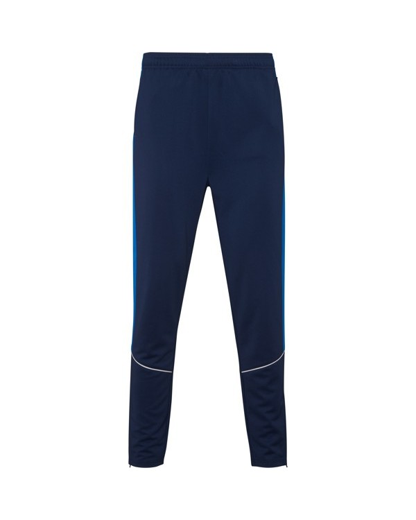The jacket stands out for its two-tone design with contrasting details , a high collar with matching overlock seams, a center zipper, and practical side pockets . Plus, its 2x2 ribbed cuffs and waistband ensure a comfortable and secure fit. The pants feature an elastic waistband with an adjustable drawstring , a contrasting side panel with piping, and a zippered hem for added convenience.
